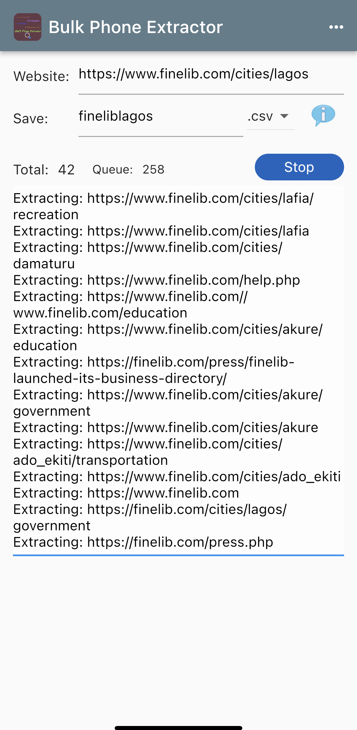 - Any phone number Bulk Phone Extractor app found will be saved automatically to CSV or Text file while app is still collecting another phones.